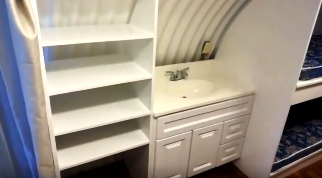 避難所內部設置了廚房、沙發(fā)、電視機、餐桌、廁所、澡堂、衣柜等??梢哉f應有盡有,能滿足人們的基本需求,一個避難所可容納8~10人。